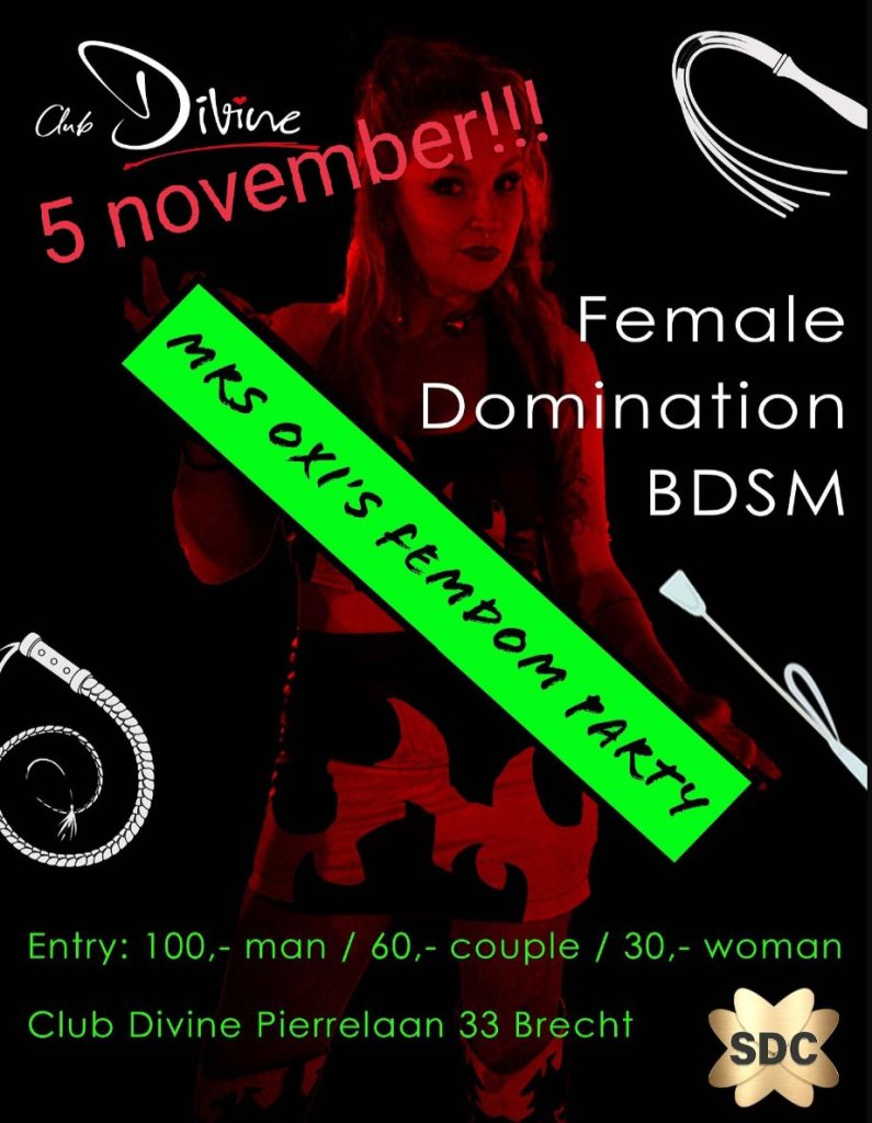 Mrs. Oxi’ femdom party @ club Divine. Curious about anything to do with female domination? Come and join the party this 5th of November